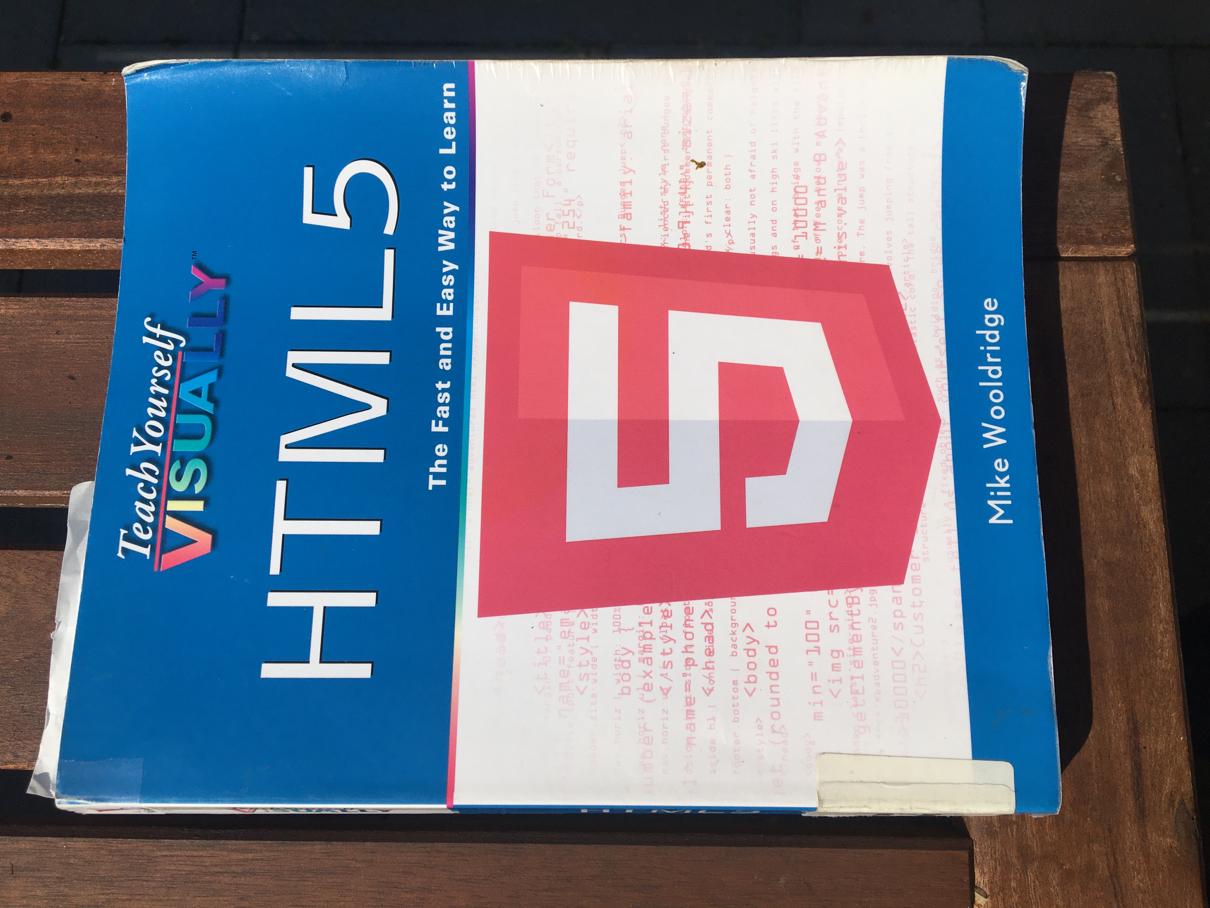 After significant searching of my personal library, online and also the Luxembourg Bibliotheque National, I found Wooldridge, Teach Yourself Visually: HTML5, Wiley, 2011.